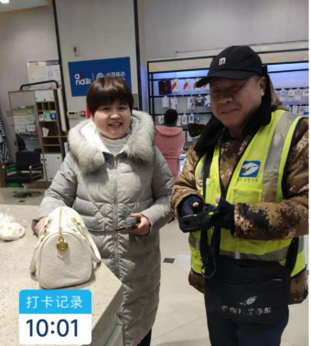 (智慧停車收費(fèi)員胡小文與失主合影)